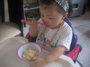 (2) While the eggs were cooking, she wanted to eat them already. :) I had to remind her so many times to let the eggs set. How many babies know what it means to wait for the eggs to set? :)